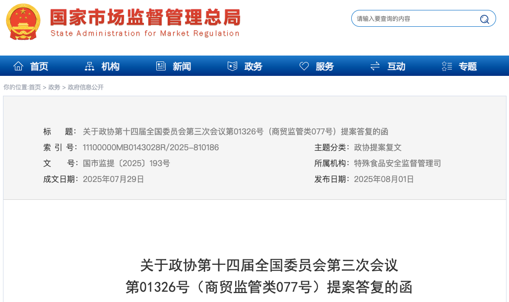 *市場(chǎng)監(jiān)督管理總局回復(fù)函