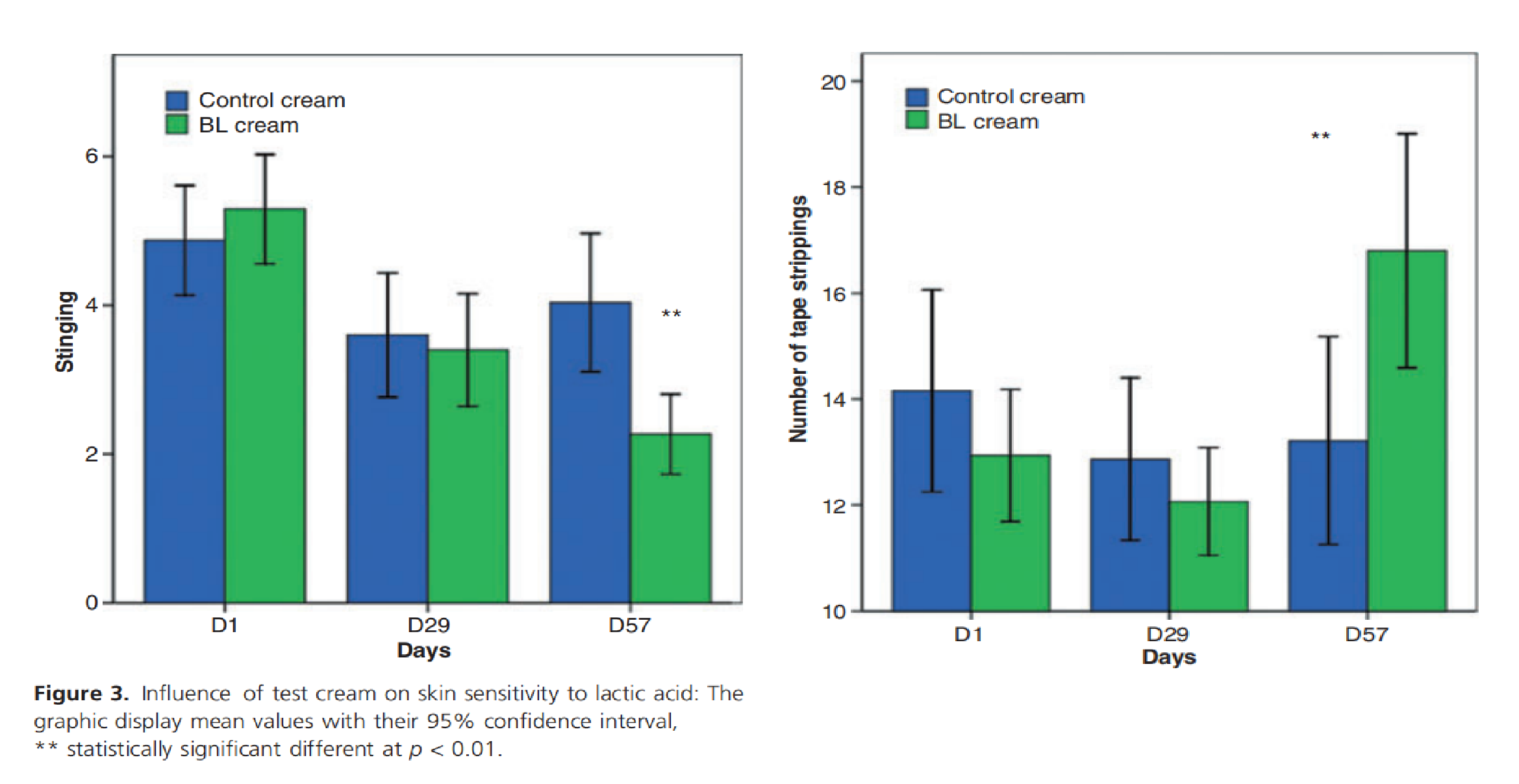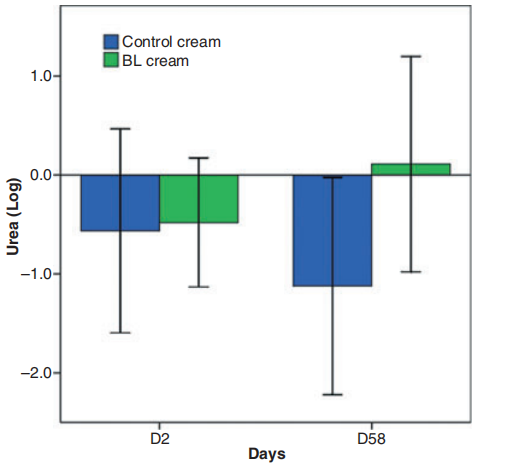 與安慰劑組相比,使用 BL 測(cè)試霜治療 2個(gè)月的組中,安慰劑中對(duì)皮膚的破壞不斷增加,而BL組中的屏障功能效果顯著增強(qiáng)